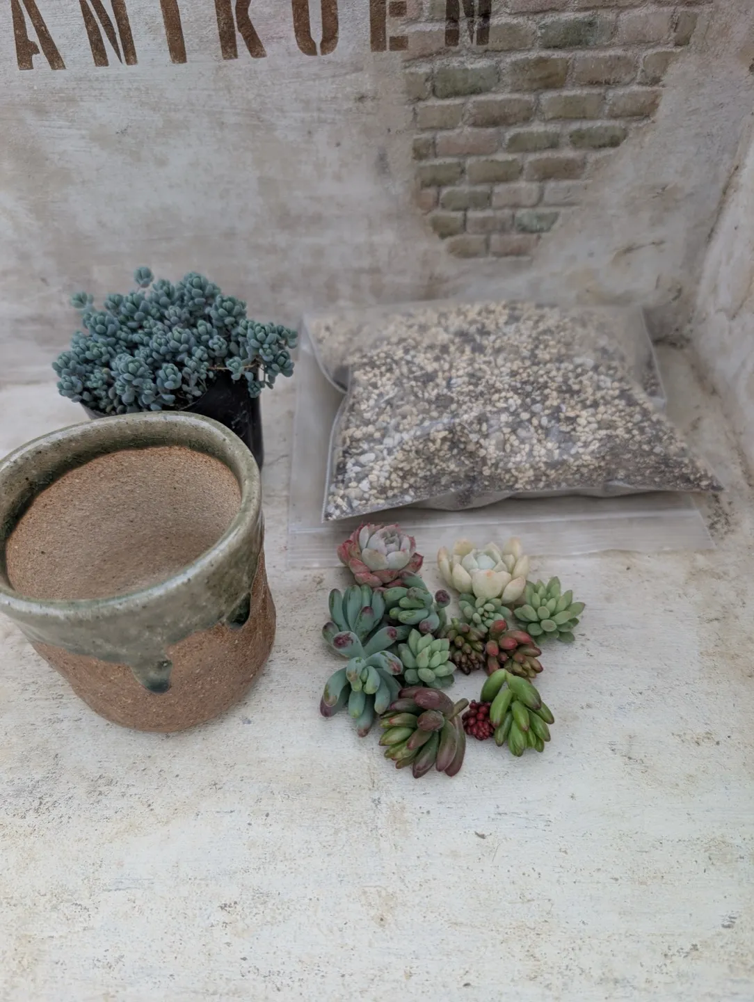 多肉植物6株と伊賀焼鉢のセット。苗と鉢を一緒に揃えたい方におすすめのパッケージです。