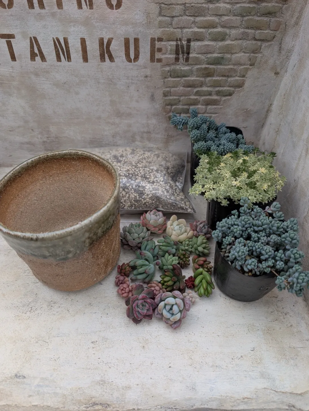 多肉植物4株と伊賀焼鉢のセット。届いたその日から植え替えを楽しめる入門セットです。